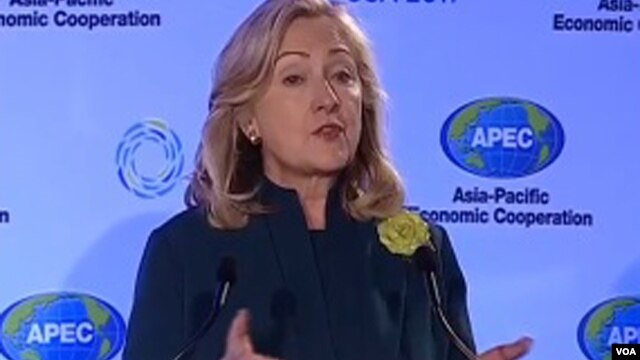 ہلری کلنٹن صدر براک اوباما کی جگہ ایپک سربراہ اجلاس میں شرکت کر رہی ہیں، کیونکہ دوسری مدت کے انتخاب کے سلسلے میں مسٹر اوباما نارتھ کیرولینا میں ڈٰیموکریٹک نیشنل کنوینشن میں مصروف تھے۔